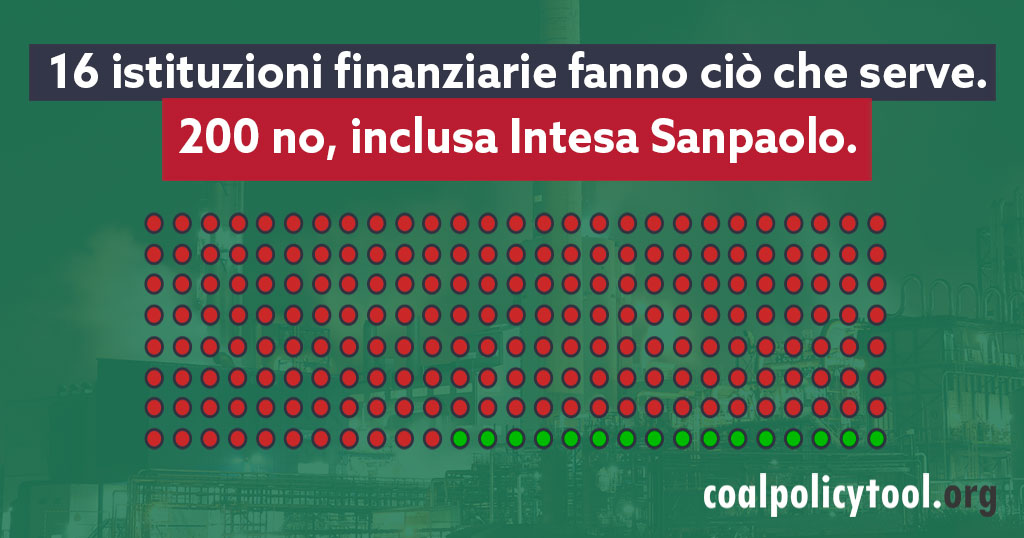 «La policy di Intesa è tra le più deboli a livello europeo, come si evince dal Coal Policy Tool. Continuerà persino a finanziare quelle società che ancora oggi prevedono di realizzare nuove centrali a carbone, nonostante gli appelli della scienza e delle Nazioni Unite a porre immediatamente una moratoria su questi impianti». Una posizione, quella di Intesa, che per Greenpeace e Re:Common è assolutamente inaccettabile.