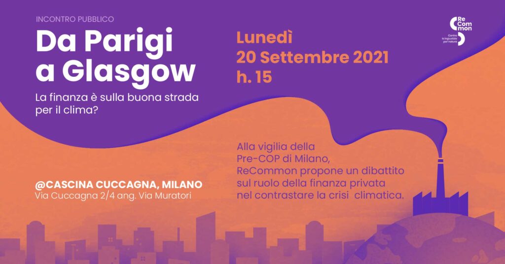 Alla vigilia della Pre-COP di Milano, ReCommon propone un dibattito sul ruolo della finanza privata nel contrastare la crisi climatica.