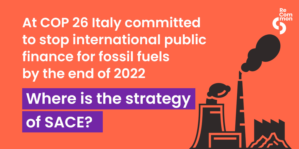 Only external pressures and circumstances have driven these decisions, but no political will to abandon fossil fuels emerges on the part of our export credit agency, which between 2016 and 2021 has placed guarantees to the oil and gas sector totaling 13.7 billion euros. Further evidence of this is the fact that the agency has never made clear and detailed information about its climate strategy, which is the one that should also lead to the implementation of the commitments made at COP26 in Glasgow. A summary of the Climate Change Policy, which was not introduced until May 2021, can be found in SACE’s Non-Financial Statement 2021. From what little can be read, these are limited commitments, both in the coal and oil and gas sectors: there is a lack of timelines, a lack of a strategy for moving away from fossil fuels, a lack of details on implementation. In short, the commitments are there but, de facto, they are not in the public domain. The unreliability of non-binding international commitments, such as the one made in Glasgow on stopping international public financing of fossil fuels, is confirmed by the lack of political will, transparency and strategy of public financial institutions that should play a crucial role in the energy transition process and act as leverage for private institutions as well. A role questioned especially by civil society actors in economically less advanced countries. Actors who question what the real willingness of export credit agencies is, SACE included, to play a role in the just global energy transition, given their constant support for the fossil industry that has internationally promoted projects devastating to the climate, environment and people.