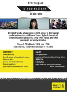 La repressione in Azerbaigian, un incontro venerdì 26 febbraio a Roma