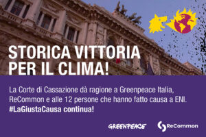 Storica vittoria per il clima, le Sezioni Unite della Cassazione danno ragione a Greenpeace Italia, ReCommon e dodici cittadini contro ENI: «Da oggi in Italia è finalmente possibile ottenere giustizia climatica»