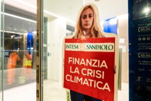 Greenpeace e ReCommon in azione contro Intesa Sanpaolo: «È la banca italiana che più alimenta l’emergenza climatica»